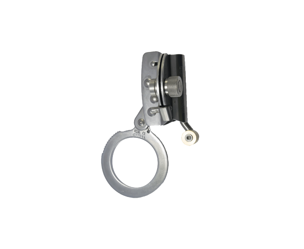 Arrestador de caídas automático con patín para cuerda de 16mm de diámetro con argolla de 55 mm para conexión. Elaborado en acero inoxidable de alta resistencia.