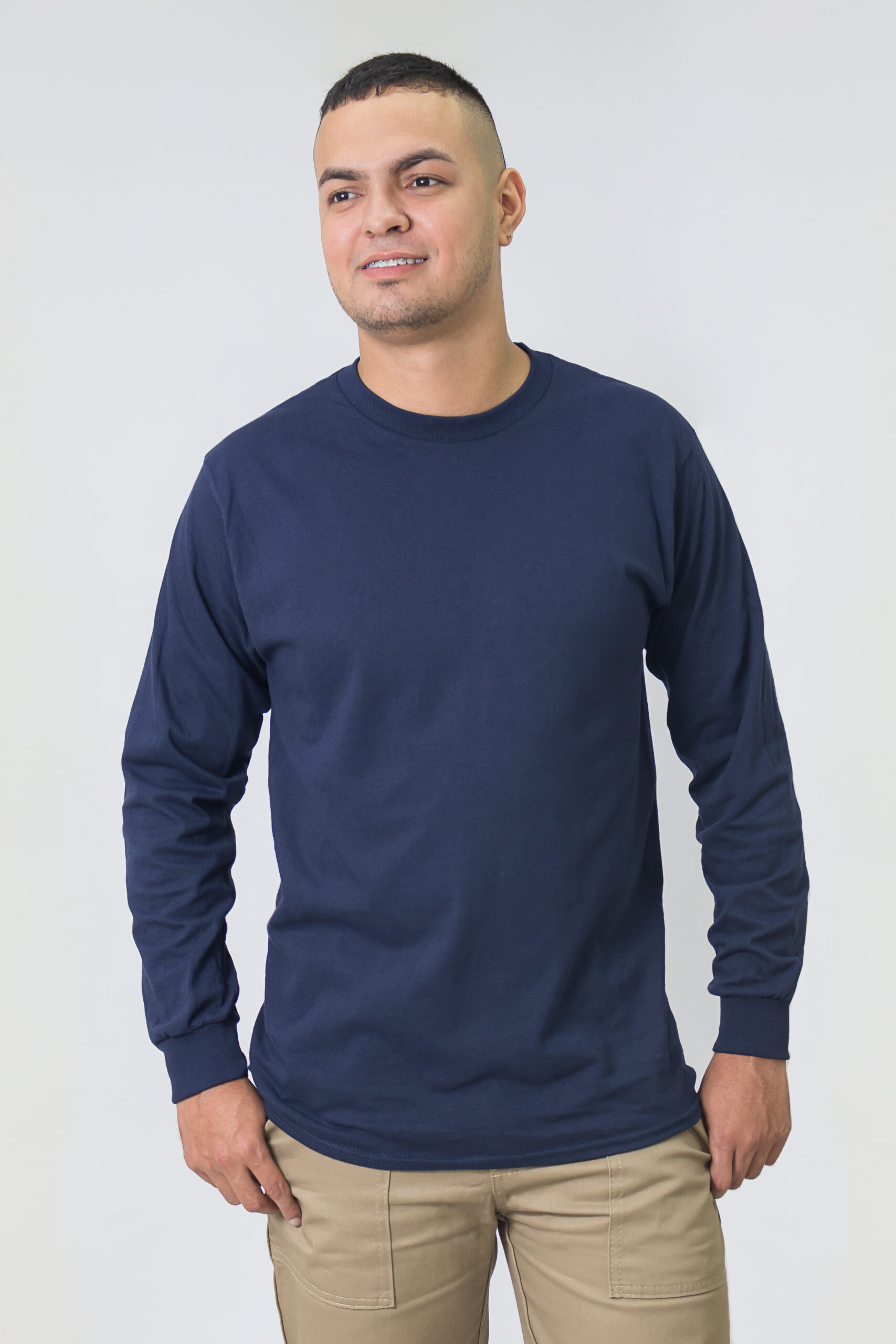 Camiseta de manga larga confeccionada en tela franela suave, fresca y cómoda, ideal para uso prolongado en climas templados o fríos. Su material ofrece ligereza, transpirabilidad y tacto agradable, brindando confort durante toda la jornada.