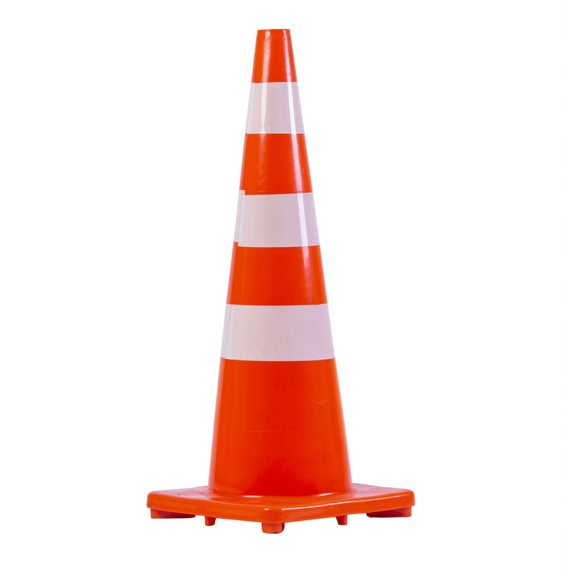 Cono de seguridad de alta visibilidad, diseñado para delimitar áreas de riesgo, señalizar tránsito o zonas de trabajo, ayudando a prevenir accidentes y mantener el orden en cualquier espacio.