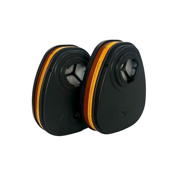 «El filtro ERGONIC F500VG A1E1 protege al usuario de gases ácidos y vapores orgánicos. Es compatible con los respiradores ERGONIC de media cara 100 y 200S, y de cara completa 1000S.»