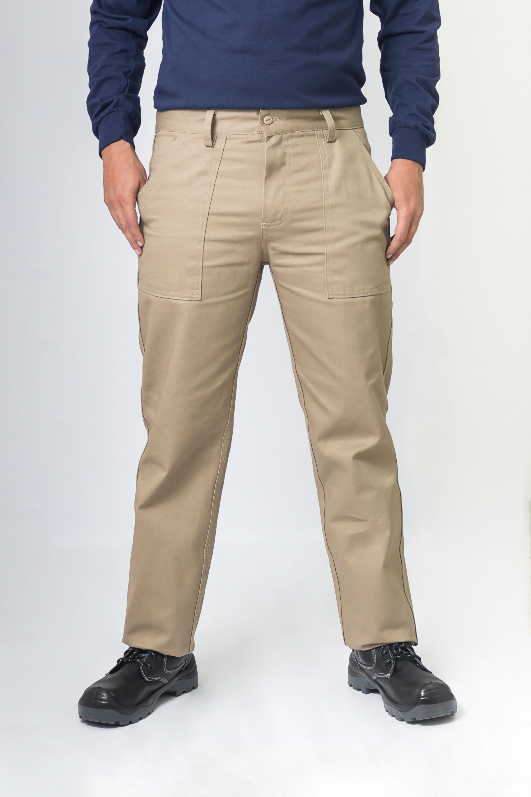 Cuenta con un bolsillo parche de gran capacidad, pensado para brindar practicidad y utilidad, permitiendo guardar herramientas, objetos o accesorios de uso frecuente. La tela dril de alta resistencia asegura durabilidad, soportando uso continuo sin perder su forma ni confort.